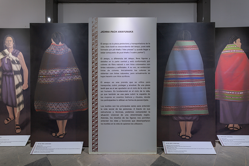 Esta exposición adentra al visitante al mundo de aquellos textiles que tienen la función de cargar, transportar y proteger a los seres. En base a las investigaciones realizadas, se identifican objetos prehispánicos, históricos y etnográficos en la forma en que se relacionaban con los cuerpos humanos. A su vez, se pretende mostrar las diferentes técnicas de elaboración, enfatizando en la iconografía presente, lo cual determina también la funcionalidad de estos textiles, que dependerán de un uso ritual, ceremonial, festivo o cotidiano.